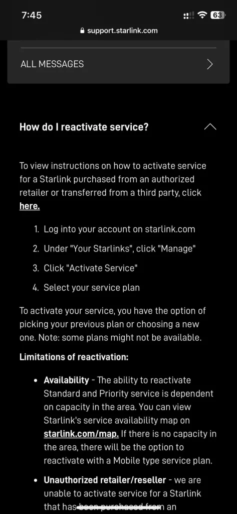 To avoid disruptions, it’s always best to check Starlink’s availability in your area before attempting to reactivate your service. If there are any issues, Starlink’s customer support can guide you through the reactivation process.